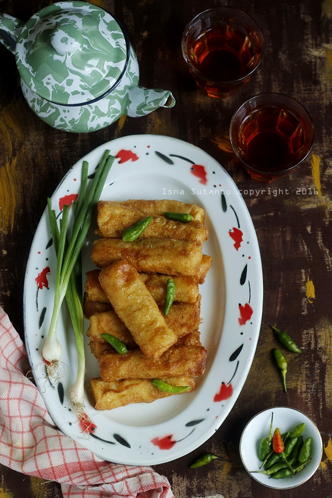 – Ambil selembar kulit sosis, beri 1sdm isian lipat seperti lumpia. Celup dalam kocokan telur hingga rata, goreng dalam minyak panas dengan api sedang sampai kecoklatan. Angkat, tiriskan.