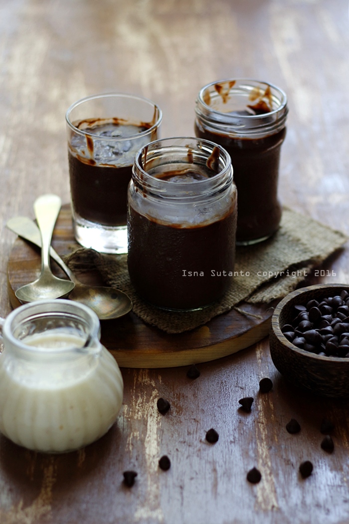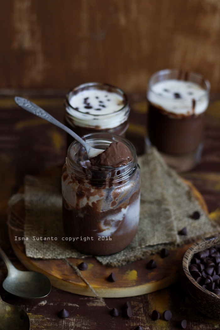 Menurut saya untuk silky coklat puding ini sebetulnya tidak memerlukan tambahan vla lagi. Tapi kebiasaan orang di Indonesia kalau makan puding ya pasangan itu vla. Iya kan? :). Oh iya, puding ini bukan seperti puding yang bisa dipotong-potong ya dan tidak bisa set/mengeras. Itulah sebabnya penyajian puding ini menggunakan jar/gelas ukuran personal, dan makannya pun harus disendokin atau menggunakan sedotan. Recommended ^_^.