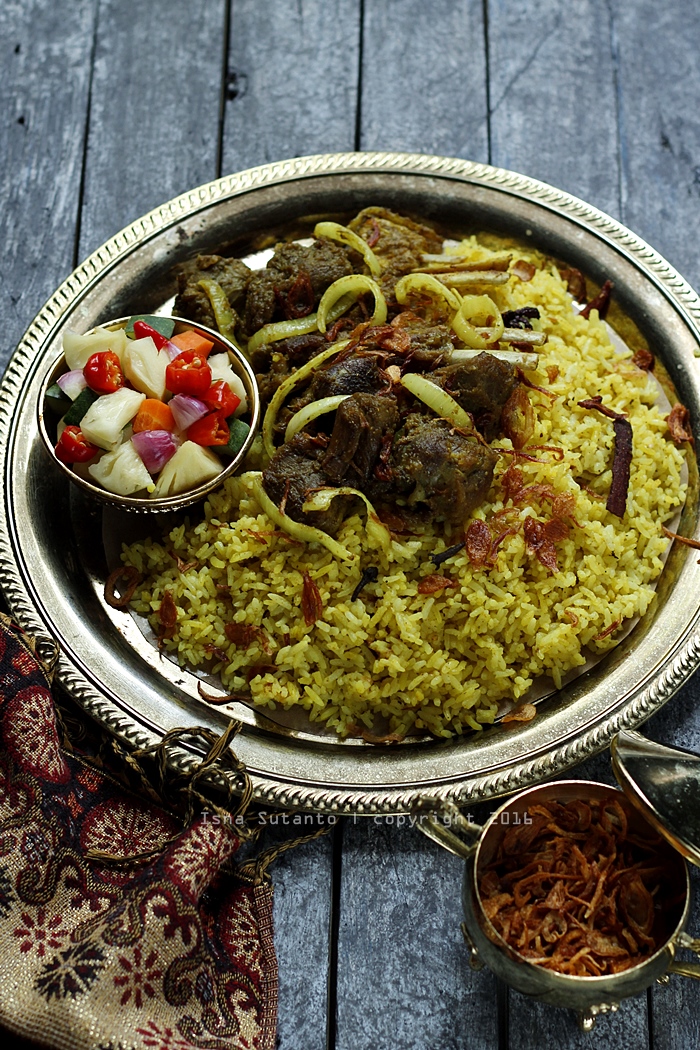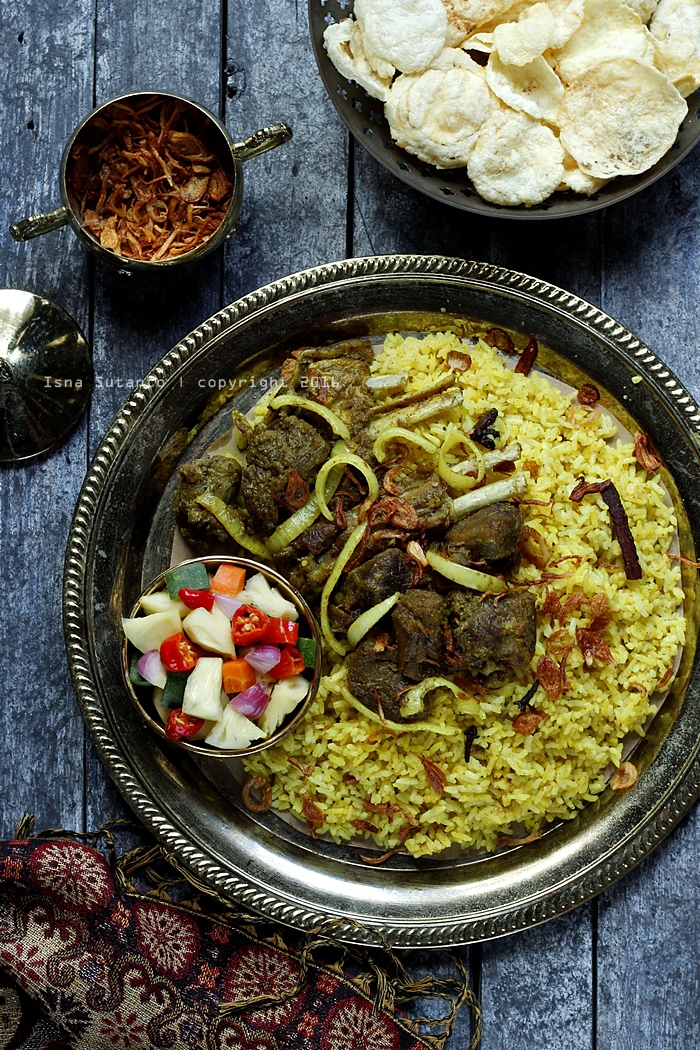 Ini masukan lama yaa, tepatnya sih setelah Idul Adha. Karen menu nya kambing, dan saya nggak pernah masak kambing kalau bukan dapet dagingnya dari kurban. Jadi masak daging kambing tuh cuma setahun sekali aja hehe. Ini saya buat nasi kebuli pakai magic com, jadi masak dagingnya dipisah. Daging saya presto dulu biar cepet, untuk bumbu nya buat sekalian yang banyak terus bagi dua untuk nasi dan daging. Ini nasi kebuli ala-ala saya, serba praktis, cepet dan gak mau ribet soalnya. Monggo dicoba, intinya kalau masak daging kambing biar bau khas nya itu hilang, banyakin aja bumbu dan rempah-rempahnya.