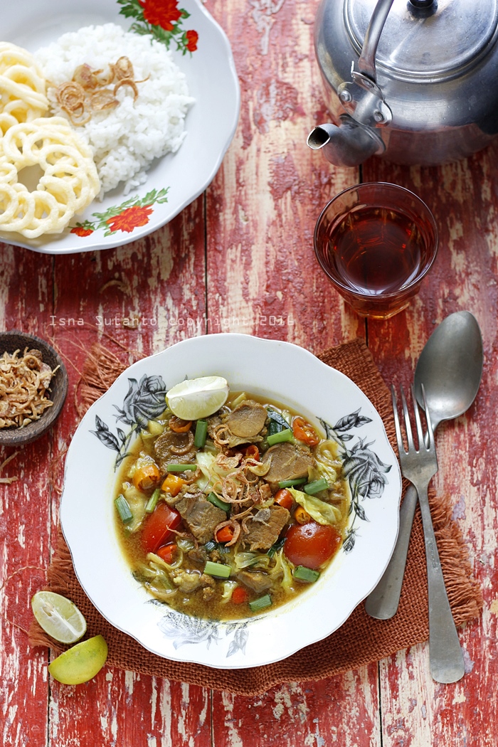 Saya masak daging kambing itu bisa dihitung dengan jari, paling setahun cuma 3 kali aja, itupun daging nya kalau gak dikasih ya dapet pembagian pas Idul Adha. Tapi kalau ditanya berapa kali makan daging kambing dalam setahun? waahh gak kehitung deh banyaknya hehee… Oiya tongseng kambing itu mirip-mirip dengan gulai, bedanya tongseng memakai tambahan sayuran yang ditumis seperti kol, tomat dan daun bawang. Pada umumnya membuat tongseng memakai santan, tapi yang saya buat ini tanpa santan, karena saya ingin kuahnya itu light saja tidak terlalu kental.
